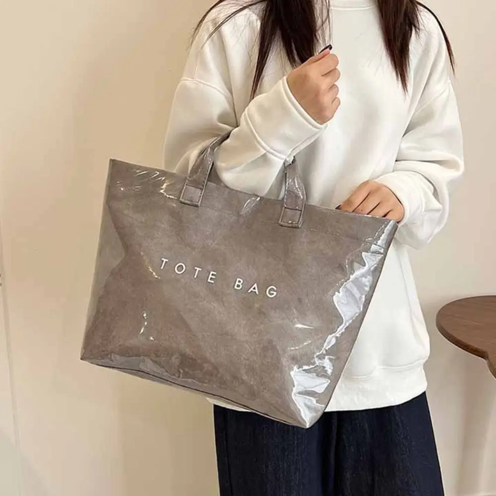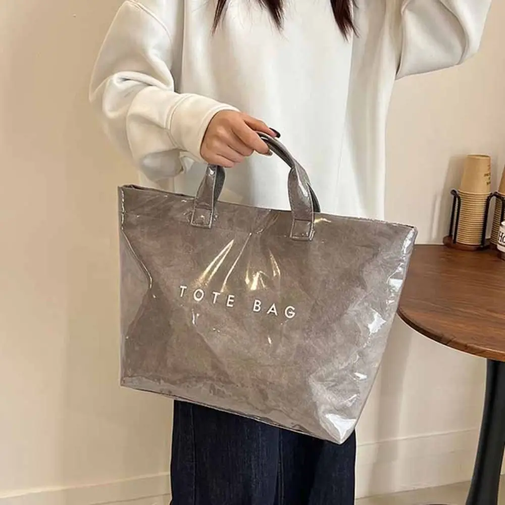 SPECIFICATIONSBrand Name: NONECN: ZhejiangGender: WomenHigh-concerned chemical: NoneLining Material: POLYESTERMain Material: TPUOrigin: Mainland ChinaPlace Of Origin: ZHE JIANG ProvinceShape: Casual Tote Product Name: PVC Transparent BagColor:Grey,Green,Black,Brown,BeigePattern:Solid Color Material: PVCSize:34*30*14cm(13.39*11.81*5.51in)Gender:Women Occasion :Outdoor,TravelPackage:1 pc of PVC Transparent Bag